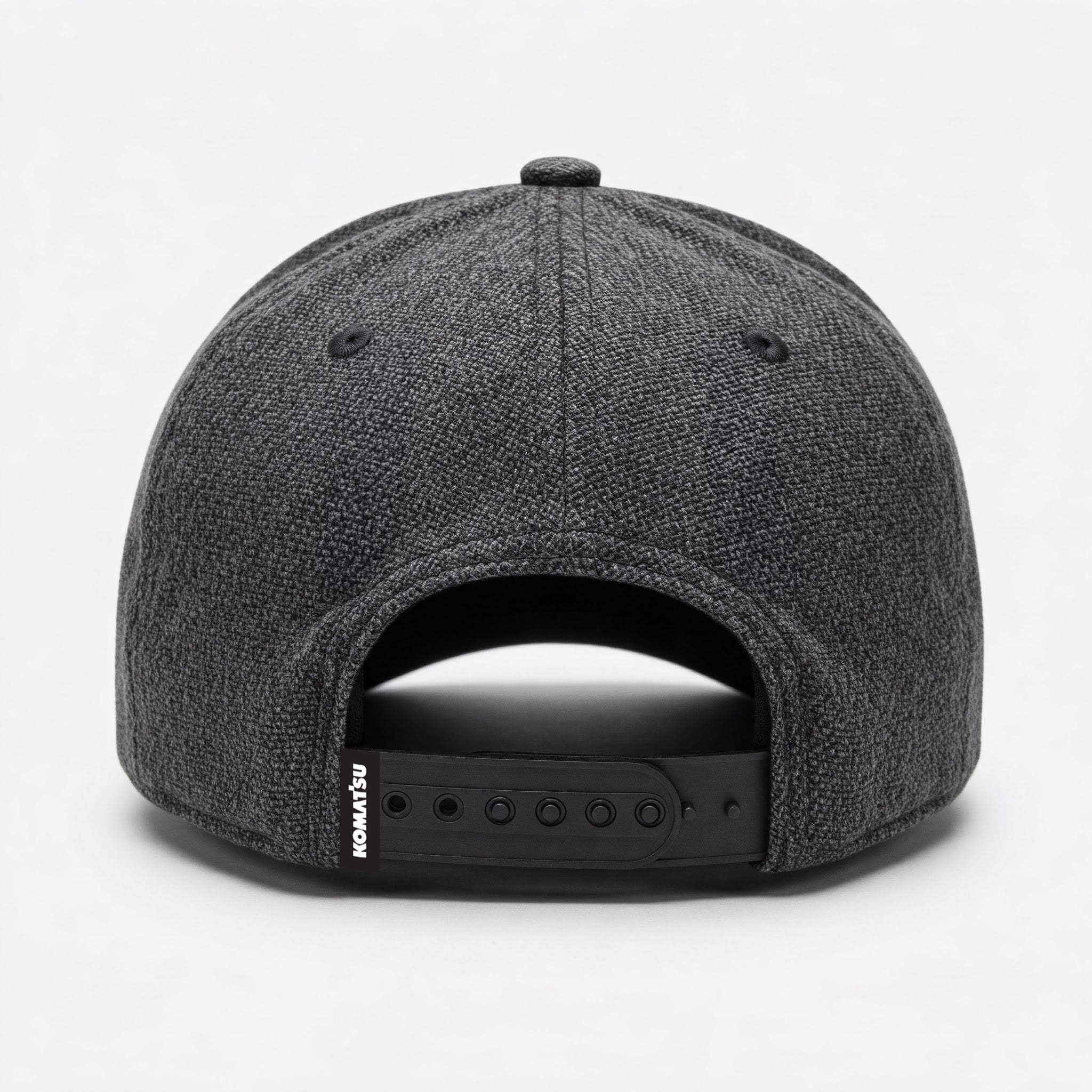 Onefit style Baseball Cap in grey denim Curved peak Elestic sweatband with Komastu woven into elastic 6 panels 6 Sewn Eyelets 8 Rows on Visor